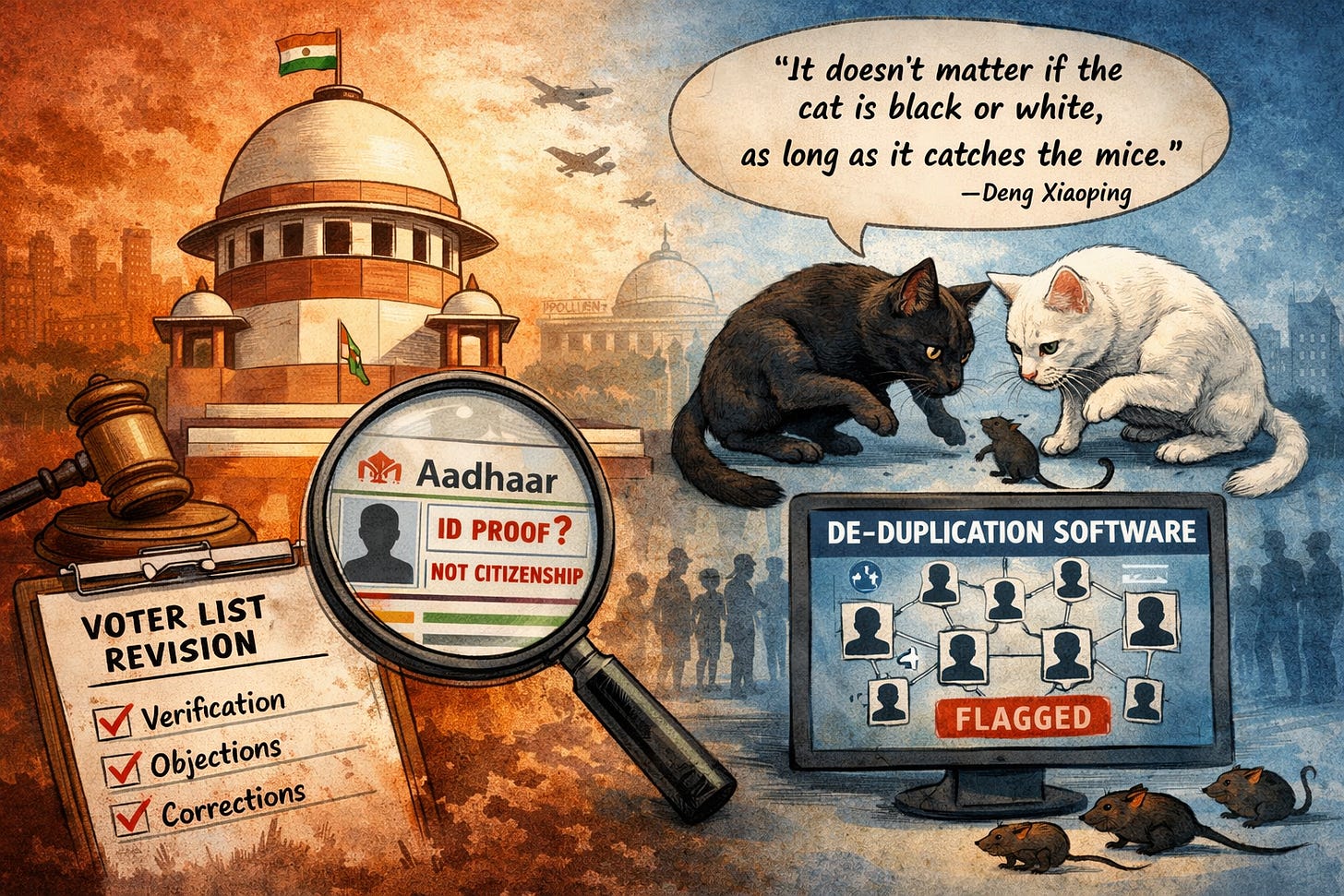 In a national electorate of this magnitude, deduplication software is not a sinister shortcut; it is a practical filter to identify probable duplicates that manual methods will simply miss—particularly where the same person appears under minor variations of name, age, or address, sometimes across constituencies and even across States. Here, the correct principle is the one Deng Xiaoping popularised: it doesn’t matter whether the cat is black or white, so long as it catches mice. In electoral terms, it matters less which tool helps detect duplication, and far more that the tool actually detects it—provided the statutory safeguards follow.